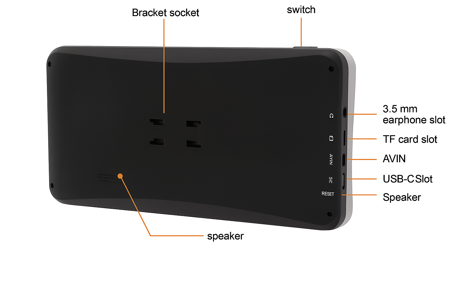 Extra groot 9” HD Touchscreen met vast zonnescherm
