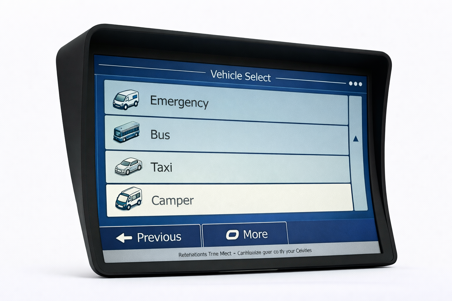 • Adapté aux camions et camping-cars (ADR, tunnels, dimensions du véhicule)