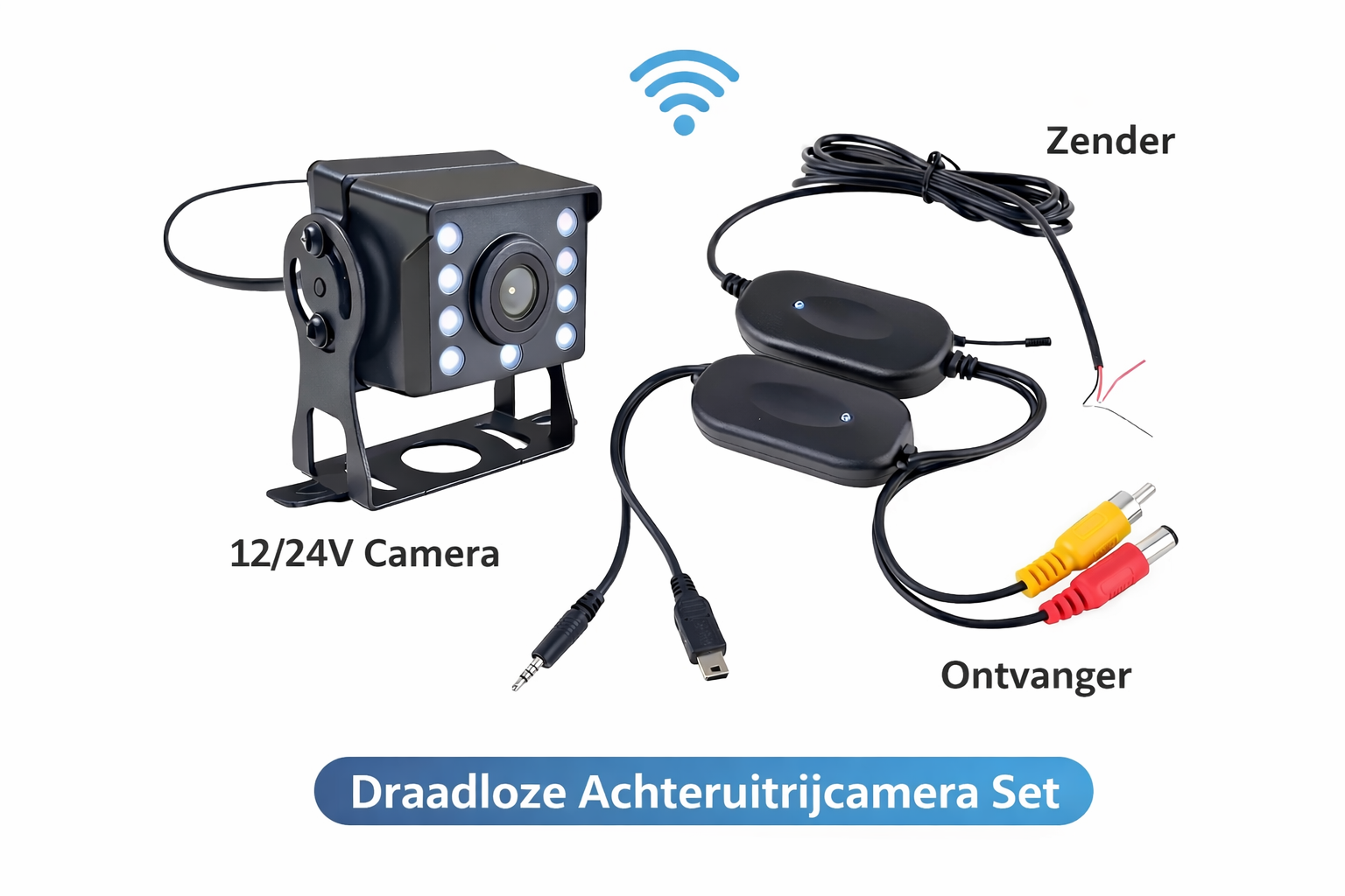 De meegeleverde draadloze achteruitrijcamera verhoogt de veiligheid en het comfort tijdens achteruitrijden en parkeren. Het camerabeeld verschijnt automatisch op het GPS-scherm bij het inschakelen van de achteruitversnelling, mits correct aangesloten.