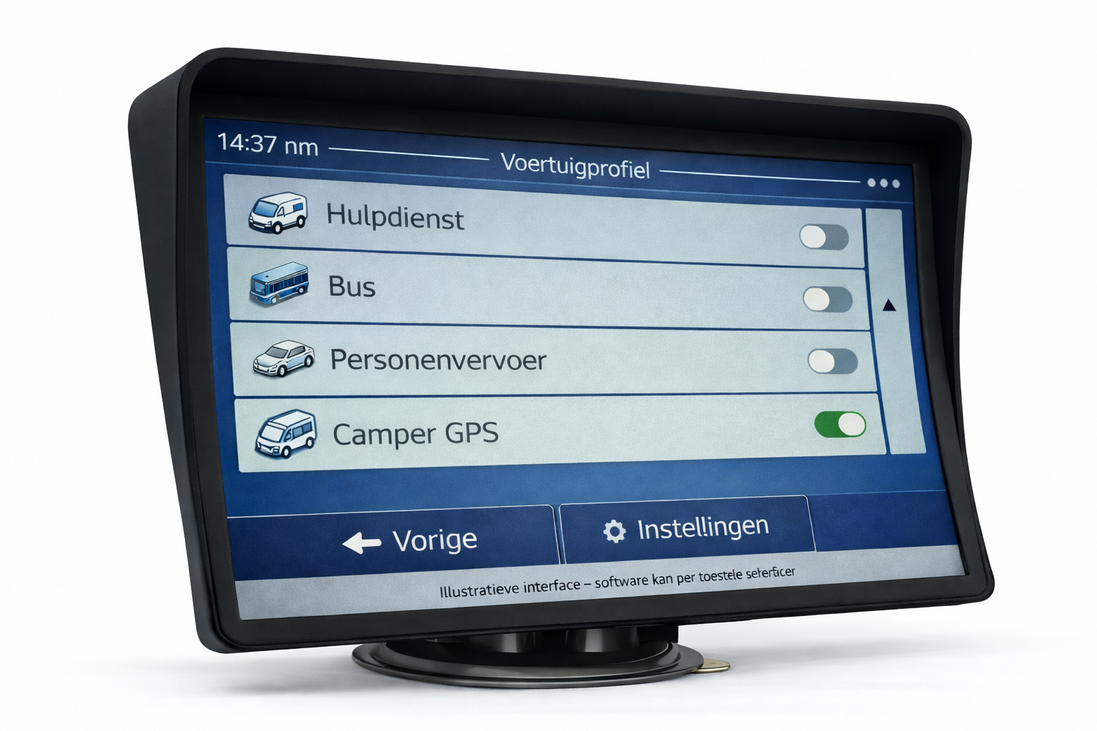 Voertuiginstellingen voor auto, camper en bus