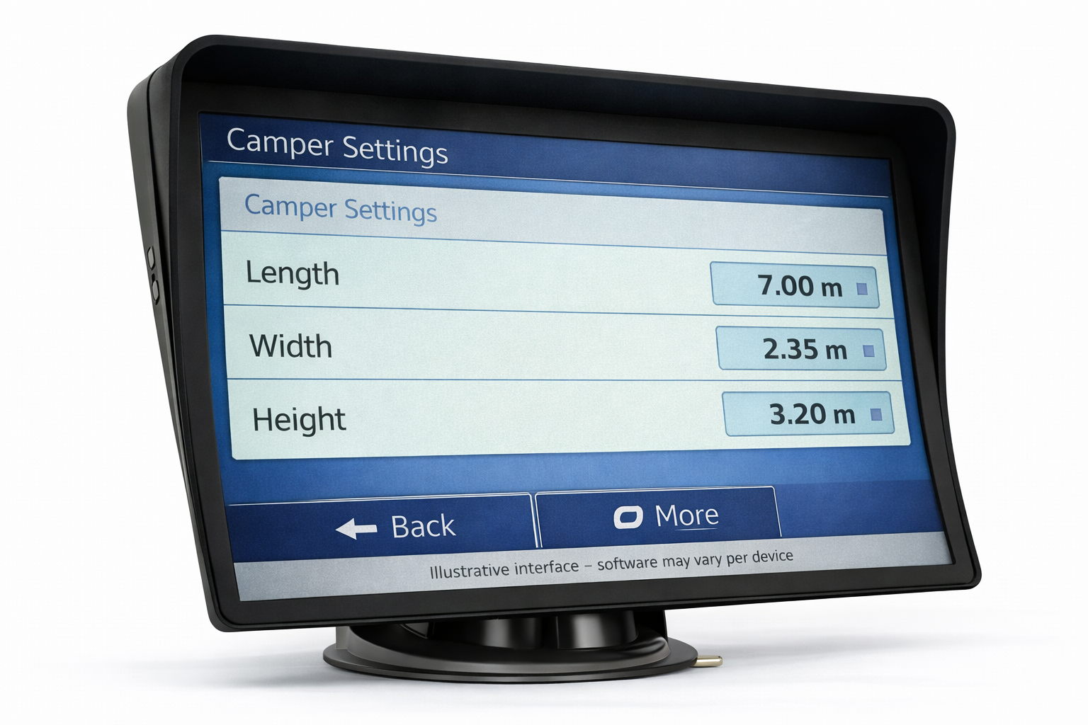 Ce système de navigation GPS 9 pouces XXL est conçu pour les voitures, camping-cars et bus. Il combine navigation, appels mains libres Bluetooth et prise en charge d’une caméra de recul dans un seul appareil clair et facile à utiliser.