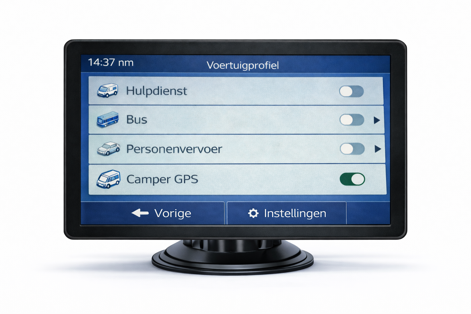 voertuigtype, kaartweergave, reistijdbeheer, brandstofverbruik, vermijden van onverharde wegen
