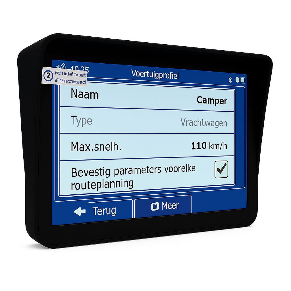 Uitgebreide voertuiginstellingen: lengte, breedte, hoogte, aantal assen, gewicht, type lading (inclusief gevaarlijke stoffen)