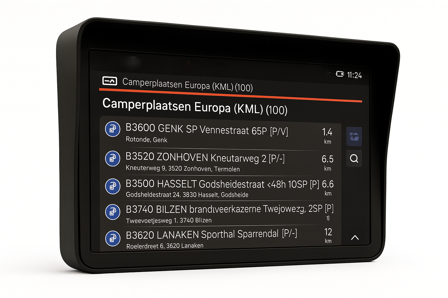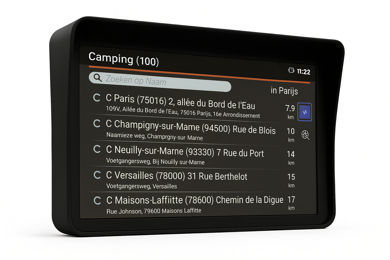 POI’s: restaurants, hotels, supermarkten, tankstations, campings, parkeerplaatsen, enz.