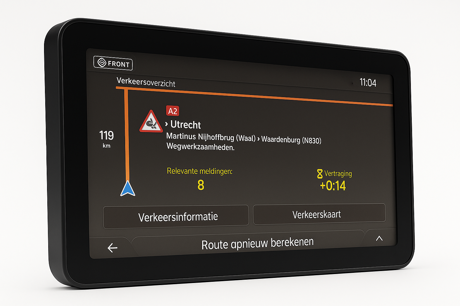 Je ziet daarna actuele verkeersmeldingen, files en omleidingen direct in de navigatie.