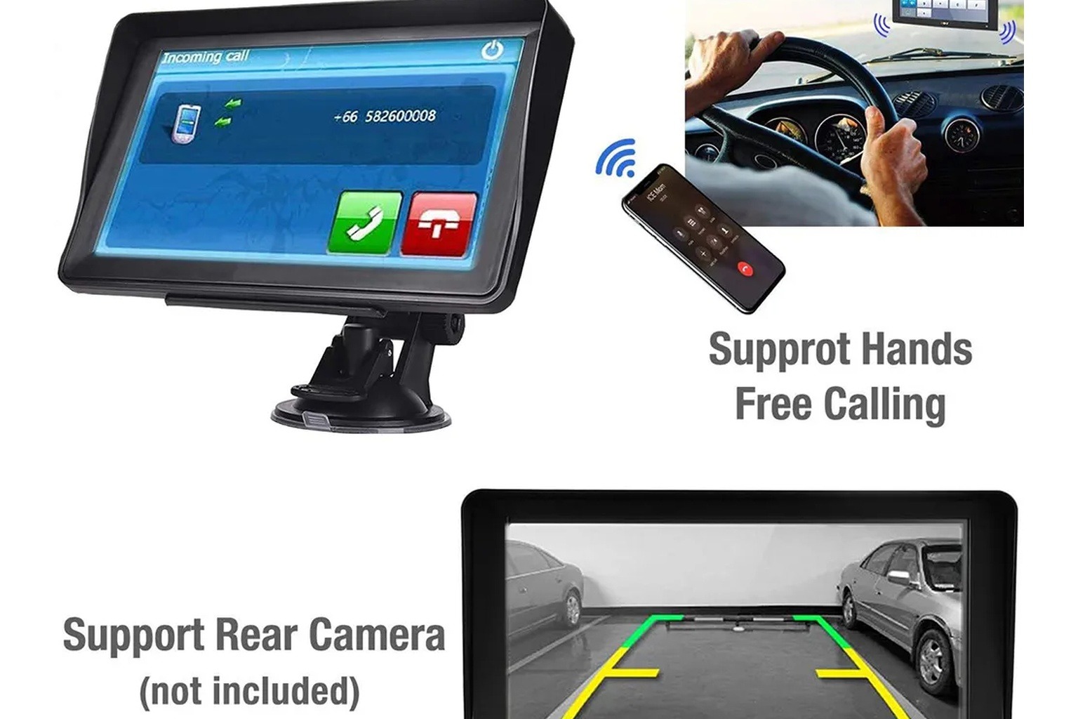 Le pare-soleil fixe, le Bluetooth mains-libres et l’entrée AV-IN assurent confort et sécurité pendant la conduite.