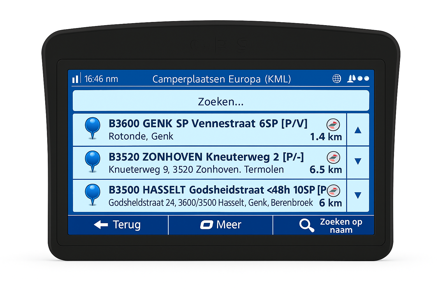 Uitgebreide POI’s: campings, camperplaatsen, hotels, restaurants, tankstations, parkeerplaatsen en meer