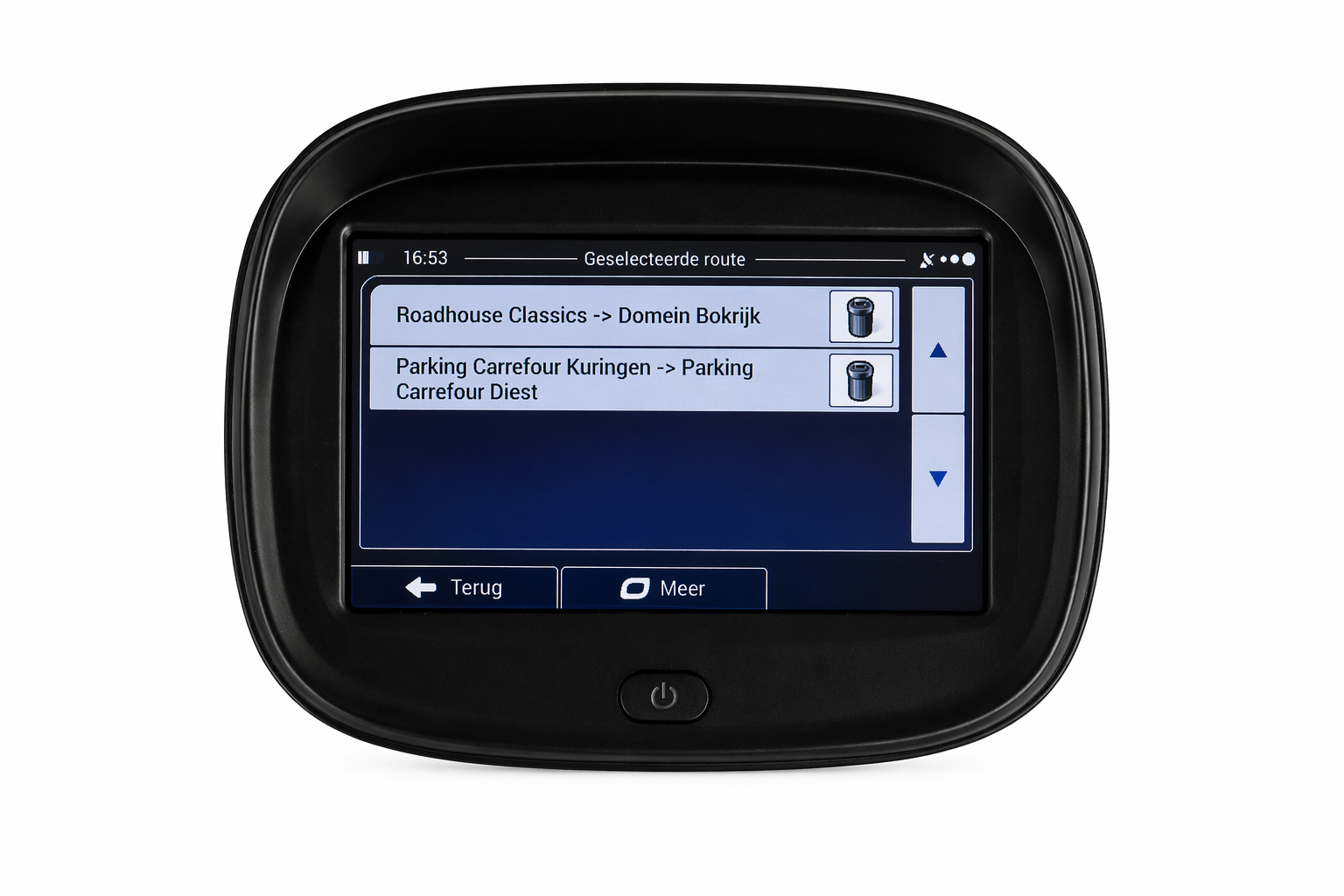 Het systeem combineert navigatie, Bluetooth handsfree bellen en uitgebreide route-instellingen in een compact en robuust ontwerp.