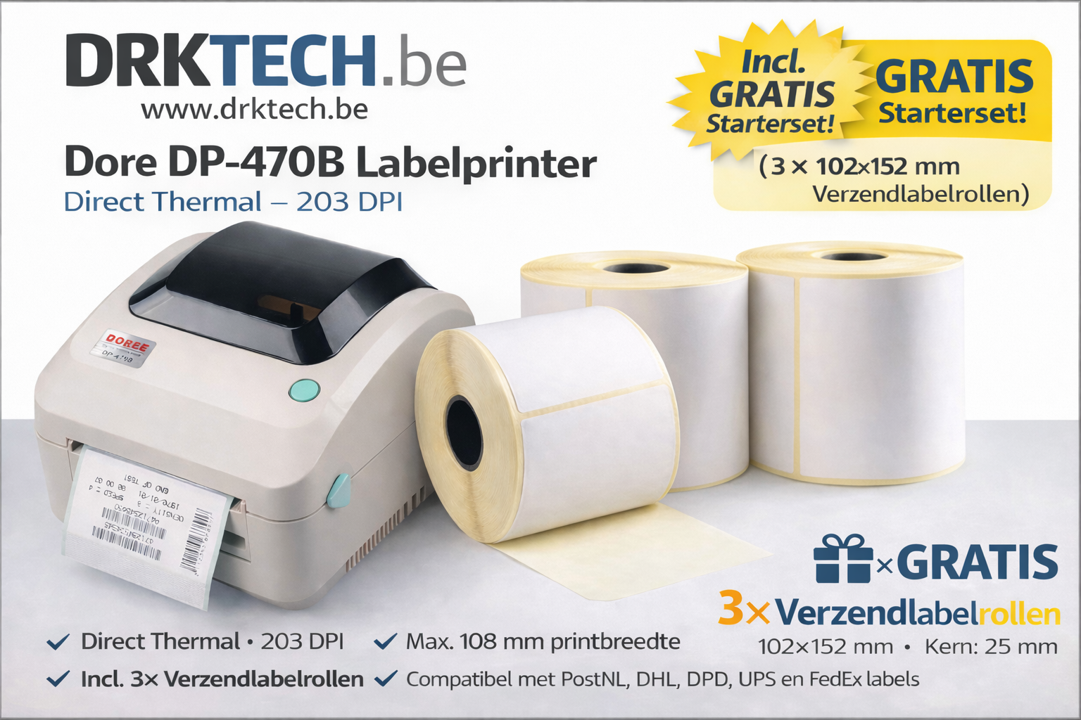 Bij aankoop van de Dore DP-470B labelprinter ontvangt u standaard een gratis starterset bestaande uit: