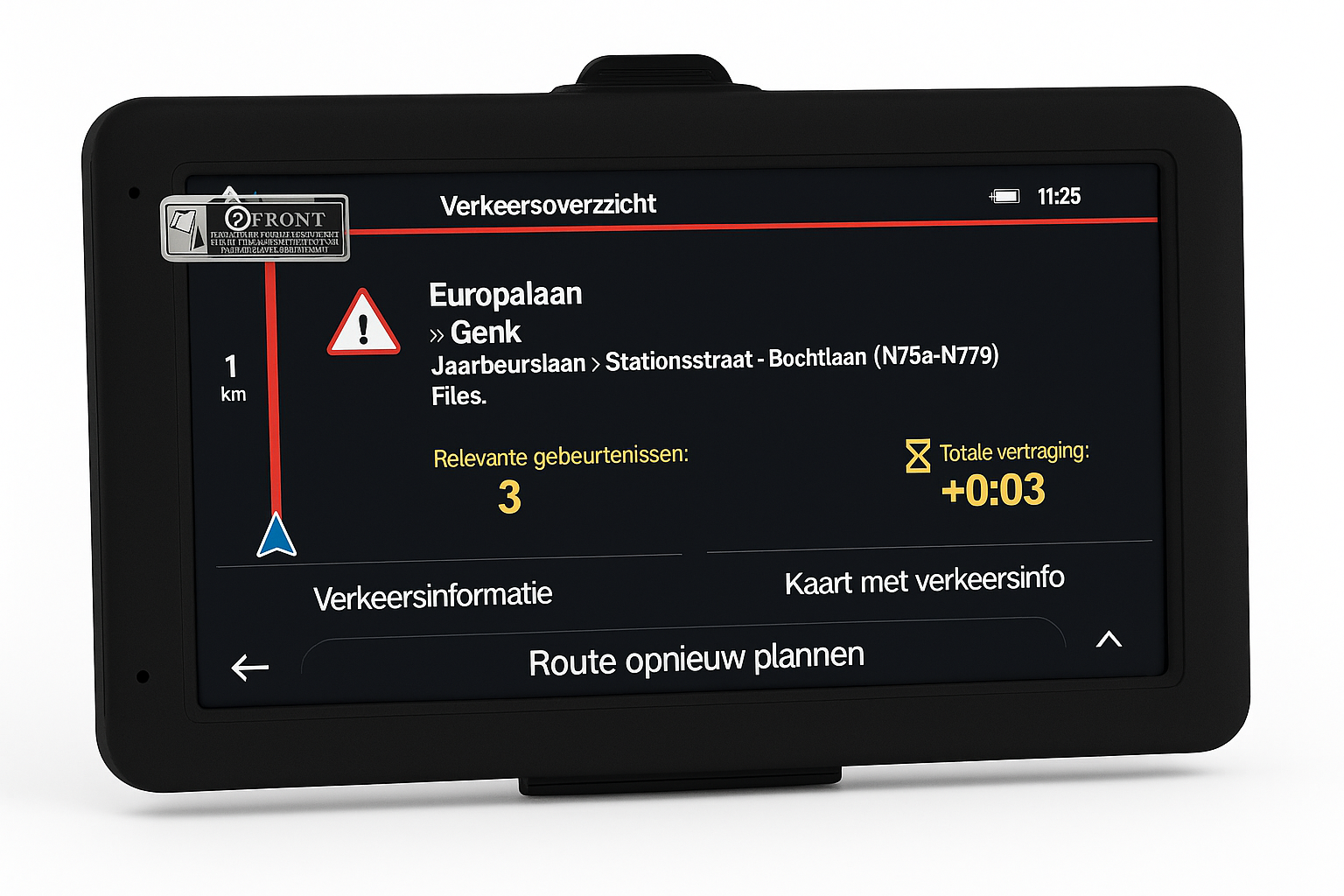 Navigatie-ondersteuning – rijbaanbegeleiding, waarschuwingen, POI’s en automatische routeherberekening